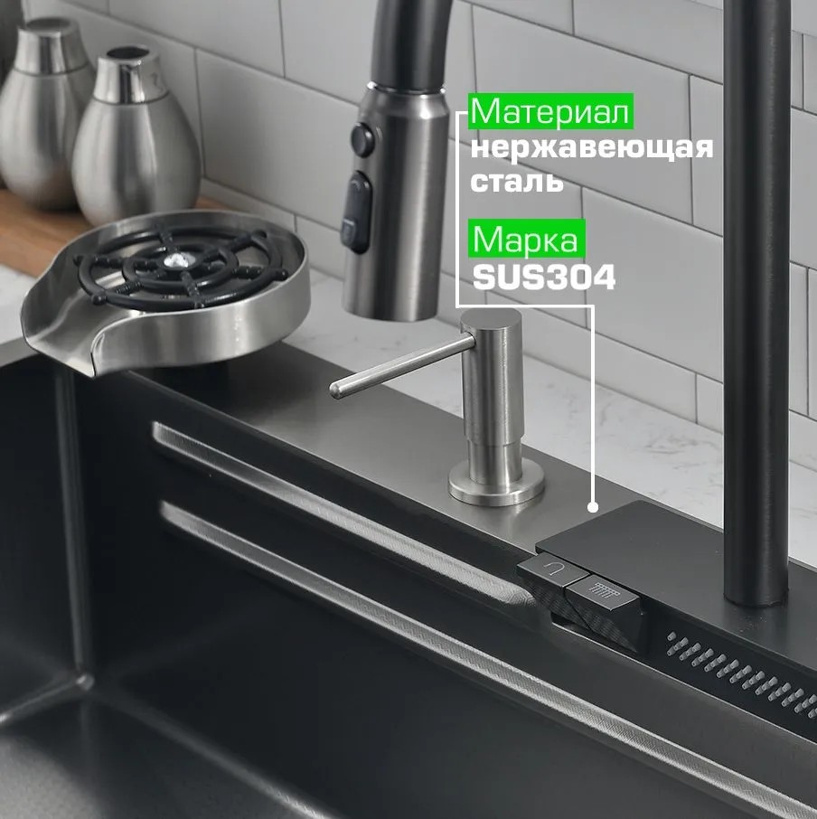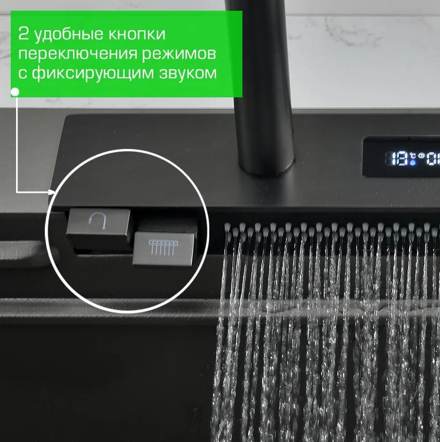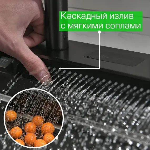 5. Поверхность мойки: PVD. Цвет: тёмная сталь («Nano-black»);