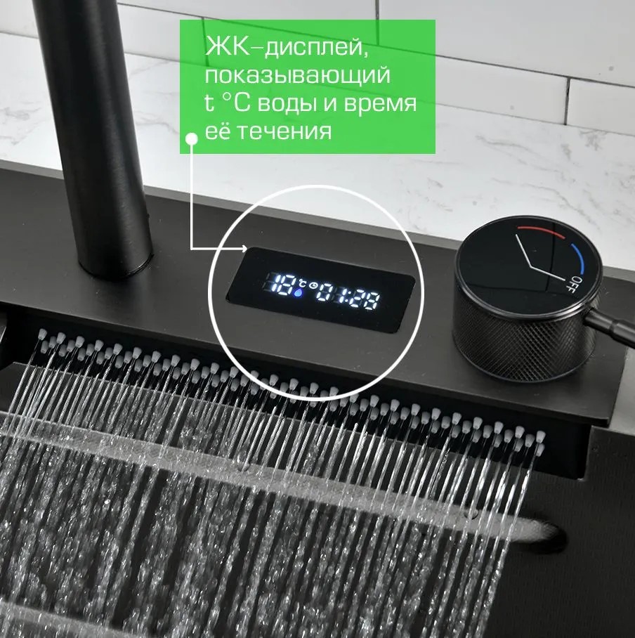 14. ЖК-дисплей, показывающий t?C воды и время её течения;