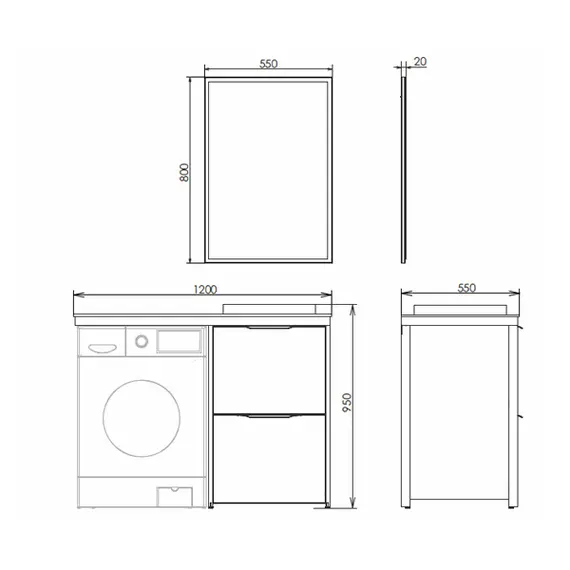 Комплект «Лозанна» разработан для рационального использования места в ванной комнате и объединяет под одной столешницей стиральную машину и тумбу с умывальником.