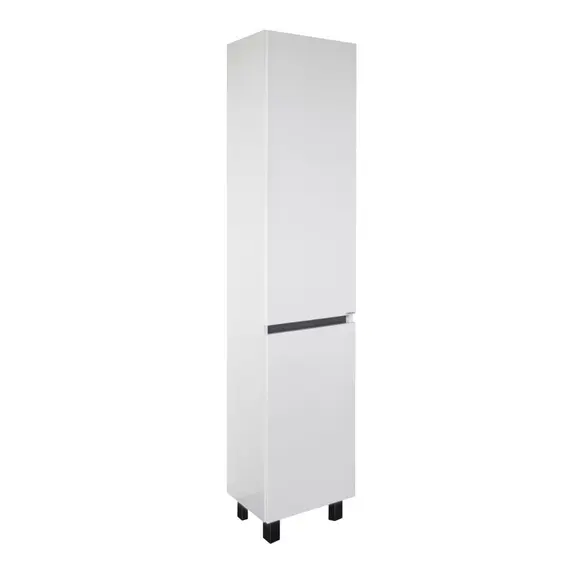 Напольная шкаф-колонна отличное решение для хранения разных предметов необходимых в ванной комнате. За верхней дверцей три полки, за нижней одна. Фасады изготовлены из МДФ и окрашены белой глянцевой эмалью. Дверцы могут быть подвешены как в правом, там и в левом исполнении. Петли оборудованы механизмами плавного закрывания.