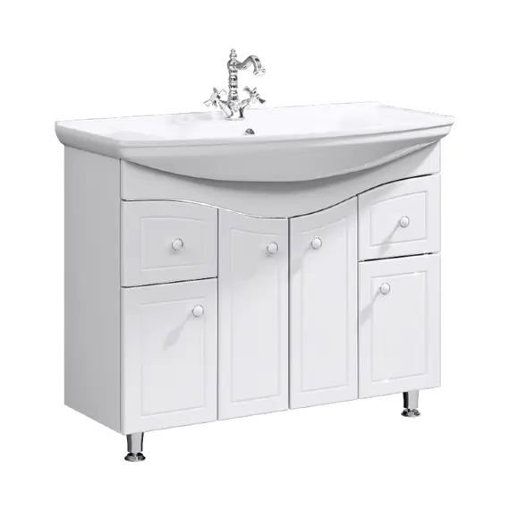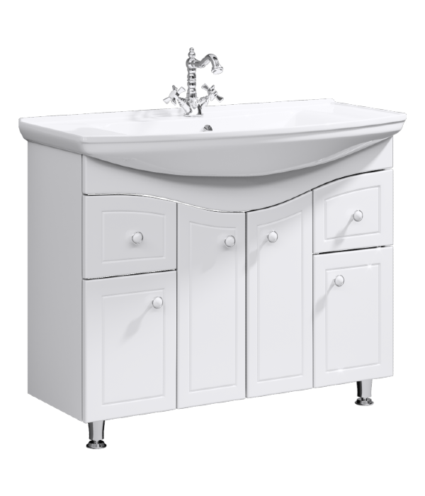 Напольная тумба AQWELLA 105 см с четырьмя дверцами и двумя ящиками с умывальником