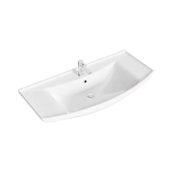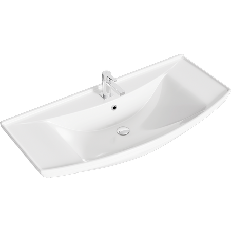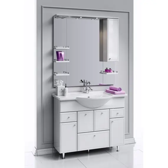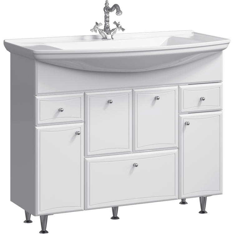 Напольная тумба AQWELLA 105 см с тремя ящиками, тремя дверцами и бельевой корзиной, с умывальником