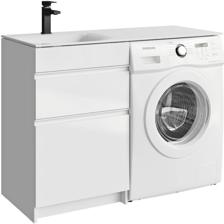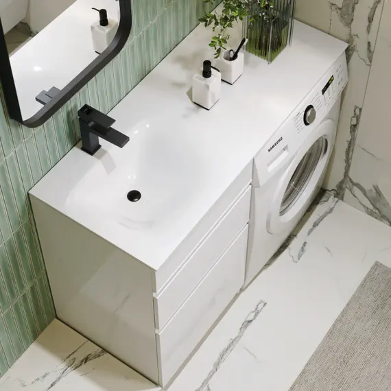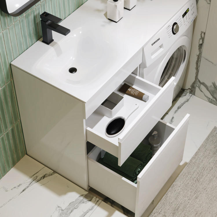 Напольная тумба AQWELLA 115 см под стиральную машину с двумя ящиками 115 см, цвет белый с умывальником
