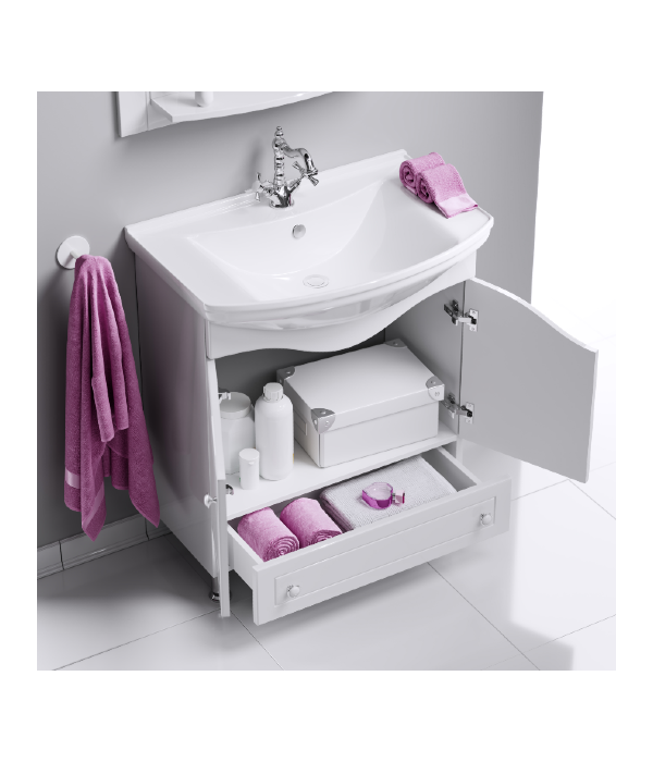 Напольная тумба AQWELLA 65 см с двумя дверцами и нижним ящиком м умывальником