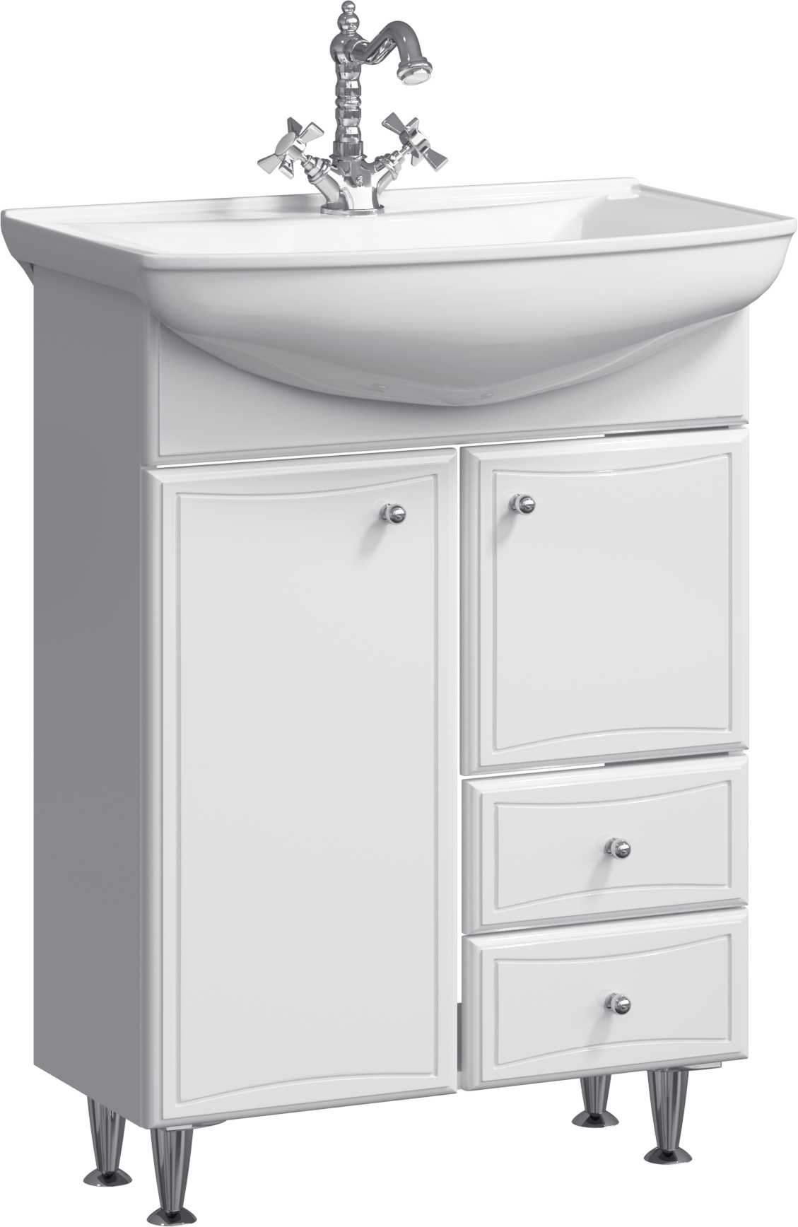 Напольная тумба AQWELLA 65 см с двумя ящиками, двумя дверцами и бельевой корзиной, с умывальником