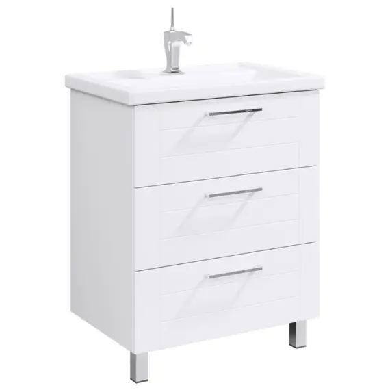 Напольная тумба AQWELLA 70 см в белом глянцевом цвете с тремя ящиками с умывальником