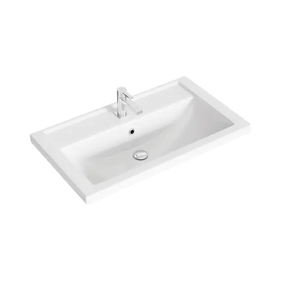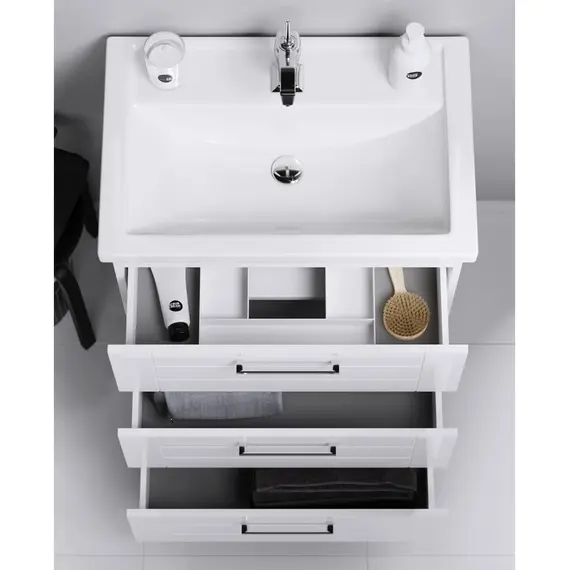 Напольная тумба AQWELLA 80 см в белом глянцевом цвете с тремя ящиками с умывальником