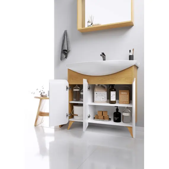 Напольная тумба AQWELLA 85 см с тремя дверцами с умывальником