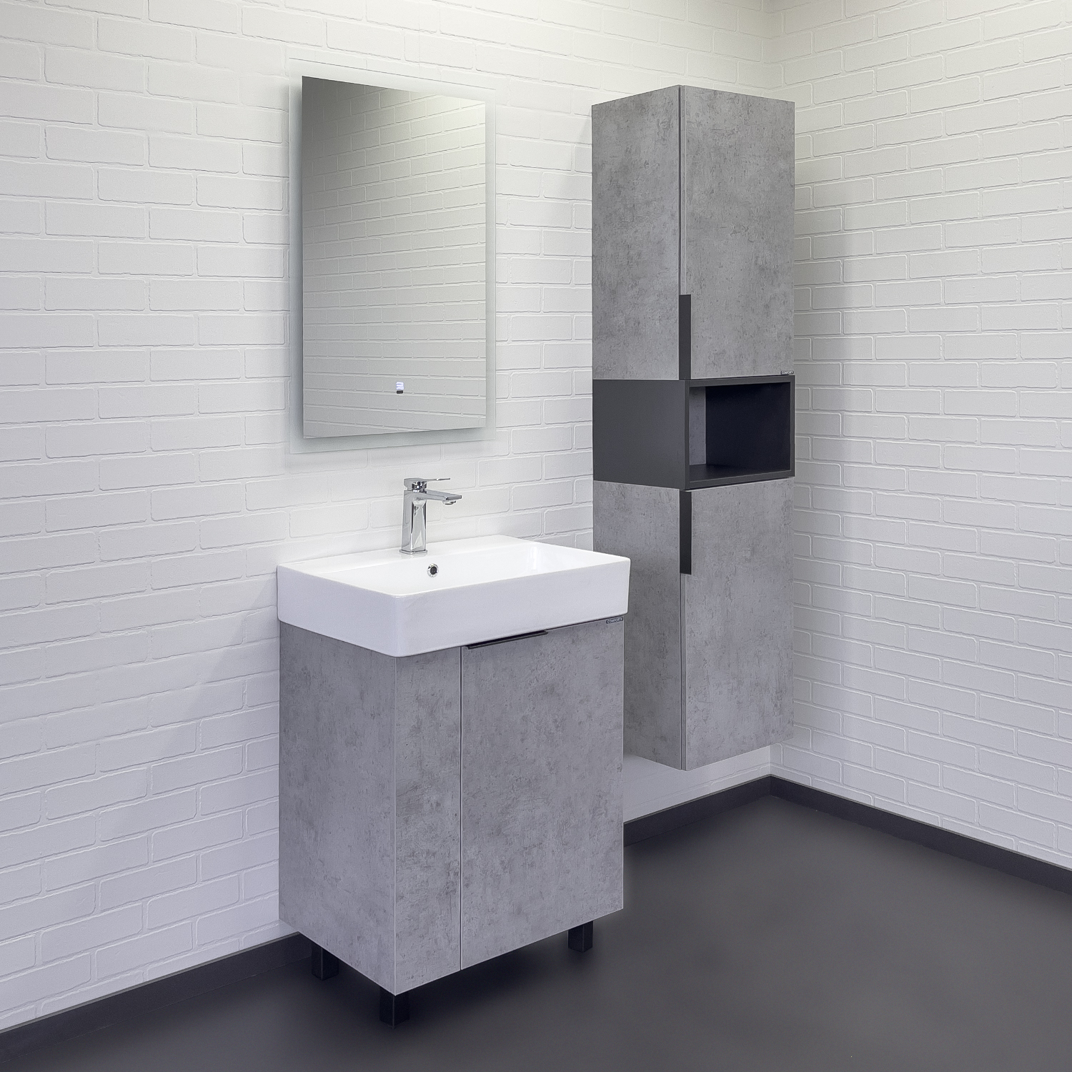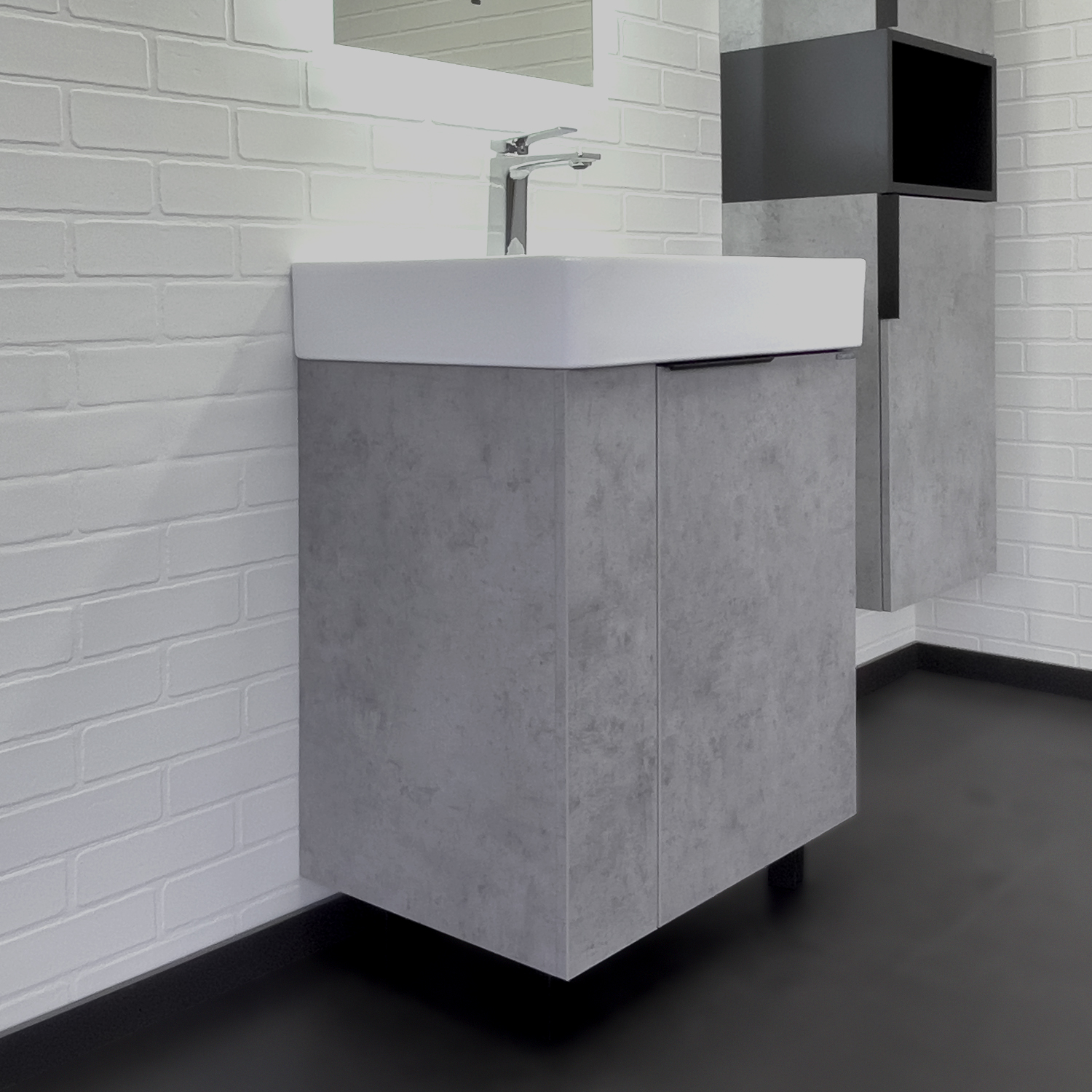 Напольная тумба-умывальник Comforty Асти 60Н бетон светлый с раковиной Comforty CF3WL032