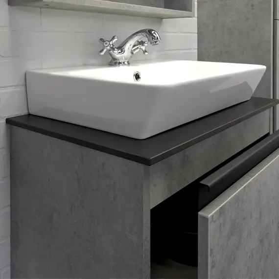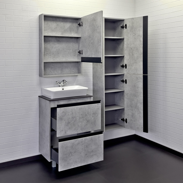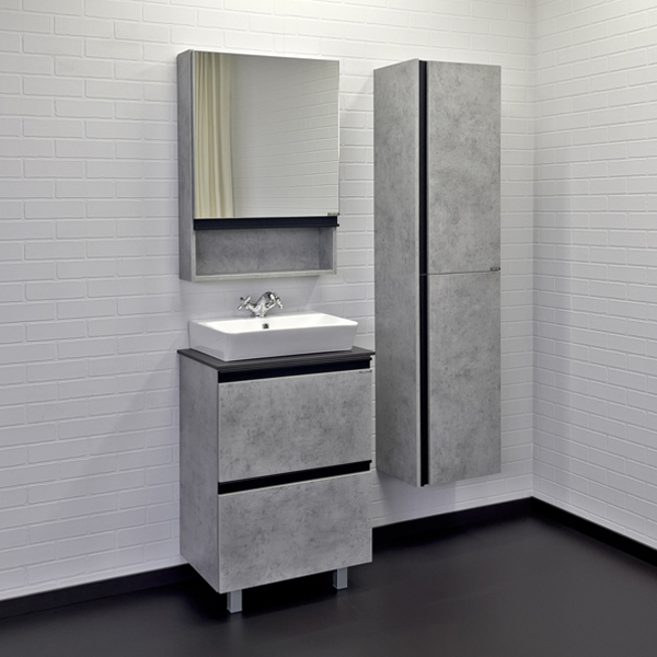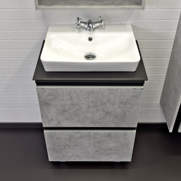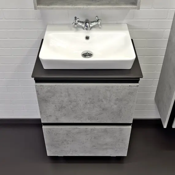 Тумба-умывальник Comforty Эдинбург-60Н бетон светлый с черной столешницей с раковиной Comforty 9055RA-50