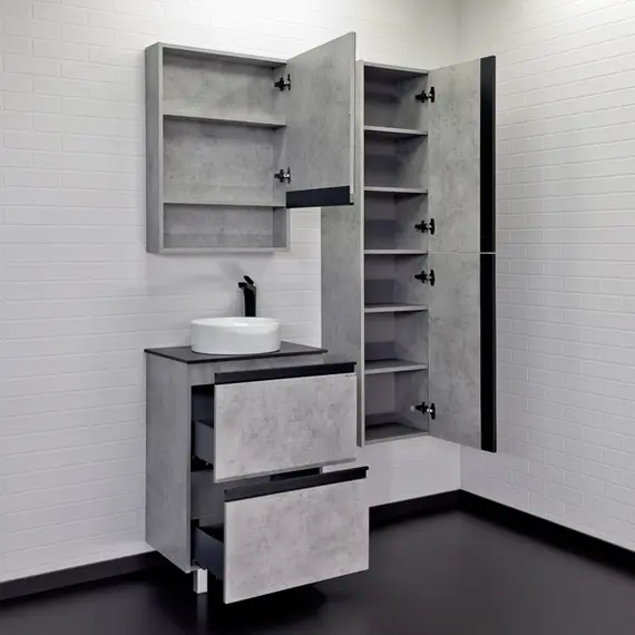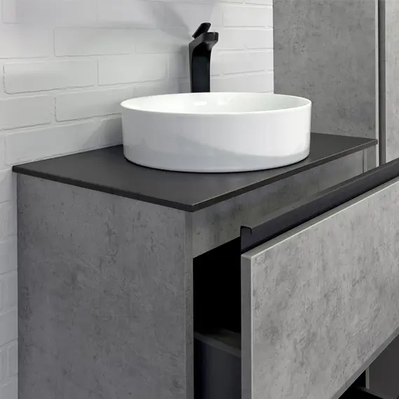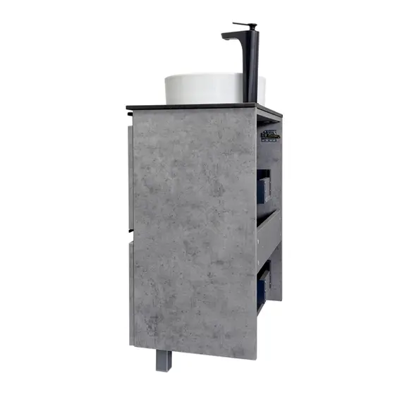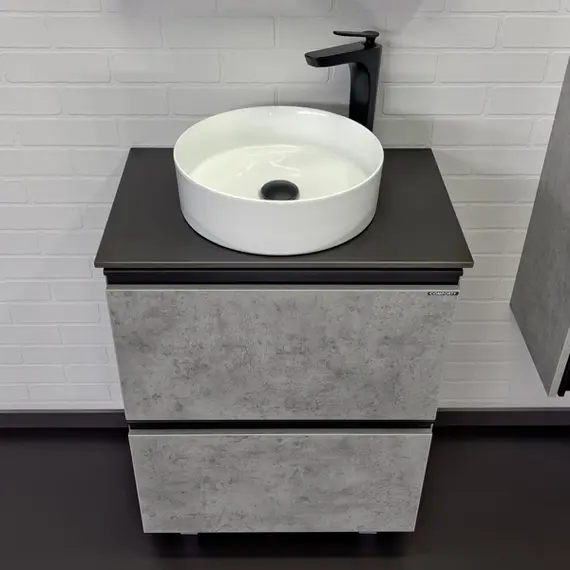 Тумба-умывальник Comforty Эдинбург-60Н бетон светлый с черной столешницей с раковиной Comforty 9111