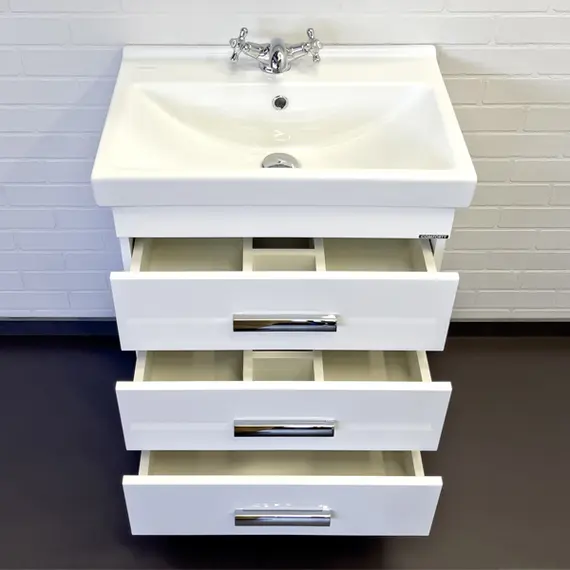 Тумба-умывальник Comforty Никосия 60Н белый глянец с раковиной Fest 60