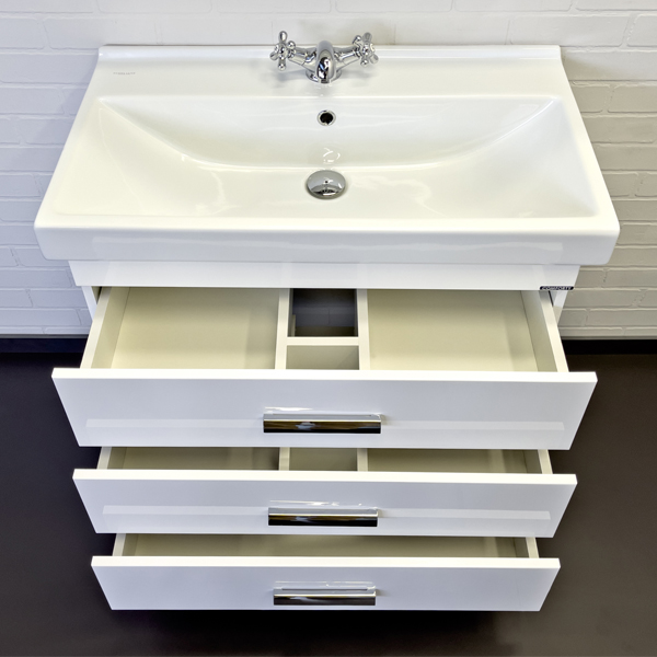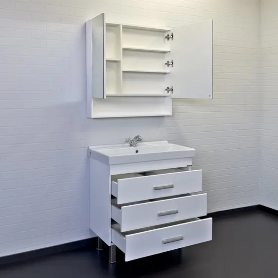 Тумба-умывальник Comforty Никосия-80Н белый глянец с раковиной Fest 80