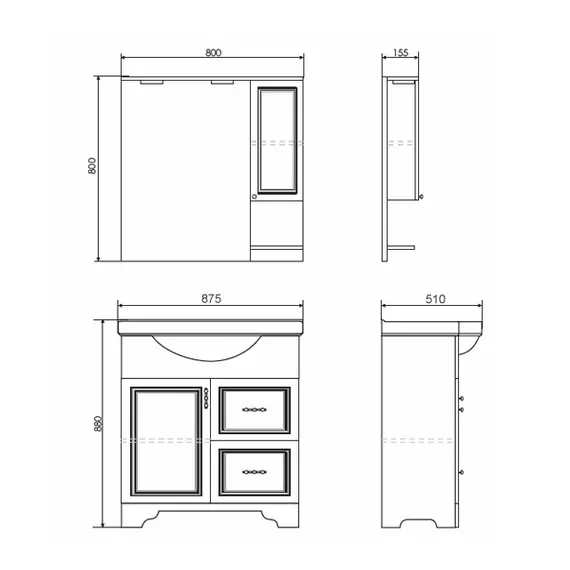 Тумба-умывальник Comforty Севилья-85 слоновая кость с раковиной Сенеж 87