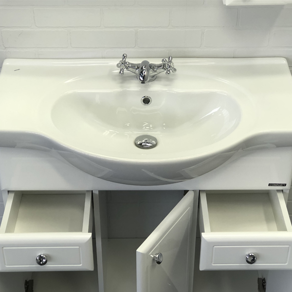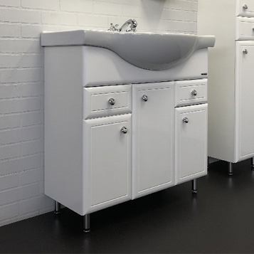 Тумба-умывальник Comforty Сочи-85 белый глянец с раковиной Сенеж 87