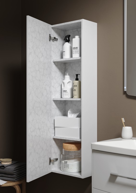 Подвесной универсальный пенал AQWELLA 25 см с одной дверью и системой открывания «push-to-open» в белом цвете