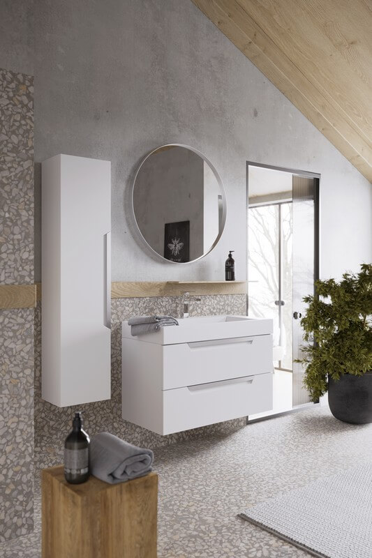 Подвесной универсальный пенал AQWELLA 30 см с одной дверью в белом матовом цвете