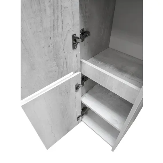 Подвесная шкаф-колонна отличное решение для хранения разных предметов необходимых в ванной комнате. За верхней дверцей две полки, за нижней одна. Дверцы могут быть подвешены как в правом, там и в левом исполнении. Петли оборудованы механизмами плавного закрывания.