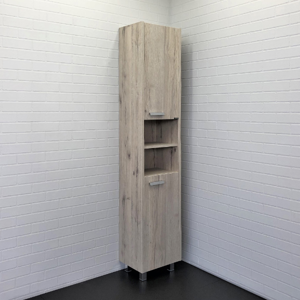 Напольная шкаф-колонна с двумя распашными створками и двумя пространствами для открытого хранения.