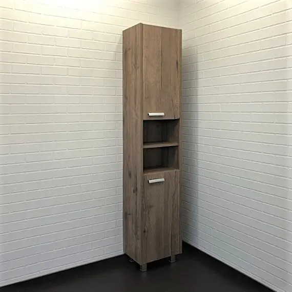 Напольная шкаф-колонна с двумя распашными створками и двумя пространствами для открытого хранения.