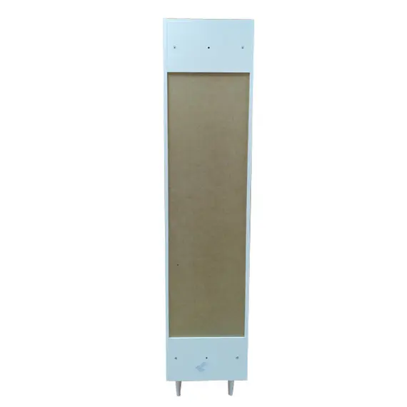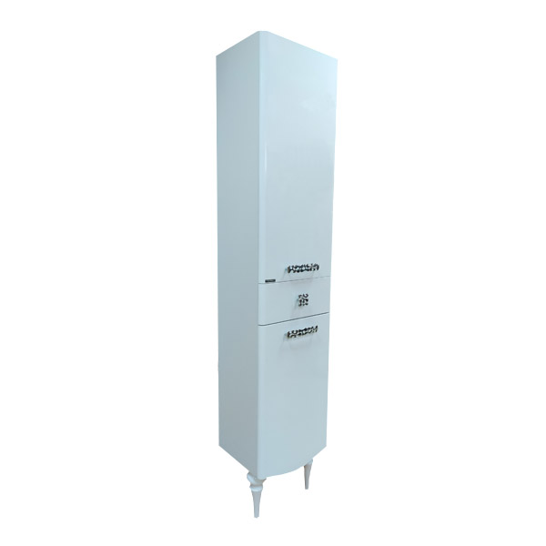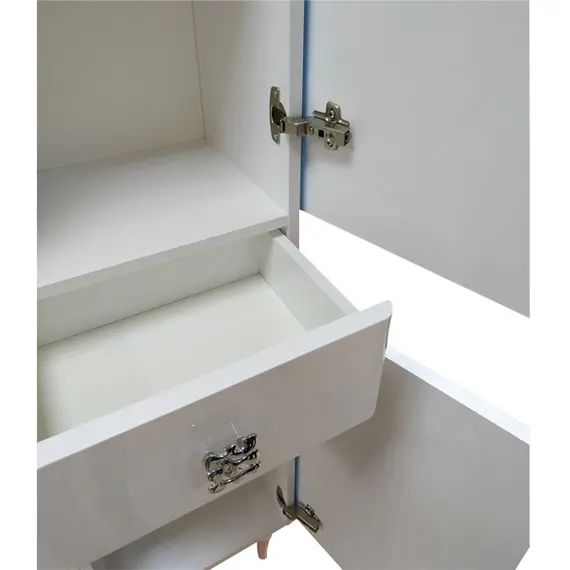 Створки открываются вправо, оснащены петлями с плавным закрыванием. Фасады покрыты белой глянцевой эмалью. За верхней и нижней дверцей по одной полке.