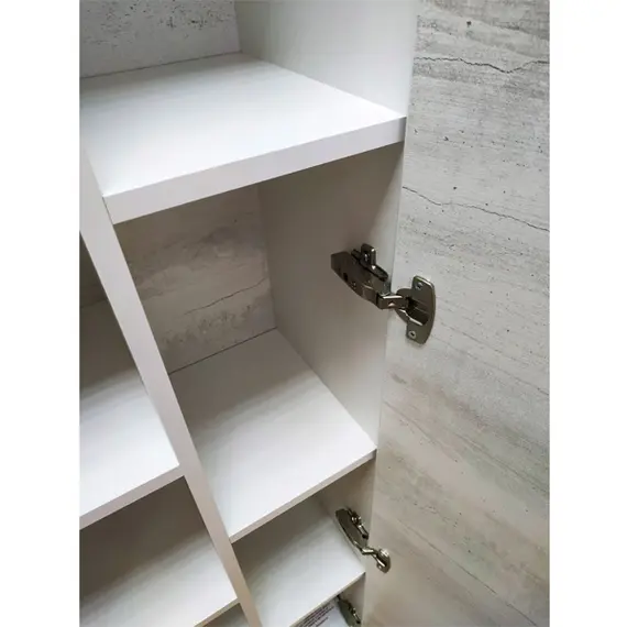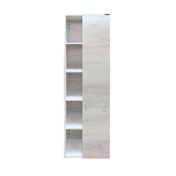 Подвесная шкаф колонна с одной створкой и пространством для открытого хранения. Створка оснащена петлями с плавным закрыванием. Фасады из влагостойкого ЛДСП Дуб белый. Корпус из влагостойкого ЛДСП дуб белый и белый матовый. За створкой три горизонтальные полки Шкаф-колонна универсальна, может быть подвешена в правом и левом варианте.