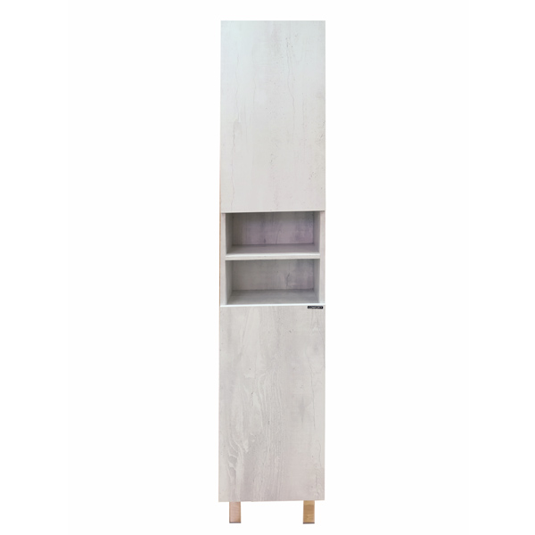 Напольная шкаф-колонна отличное решение для хранения разных предметов необходимых в ванной комнате. За дверцами по одной горизонтальной полке. Петли створок можно установить как справа, так и слева