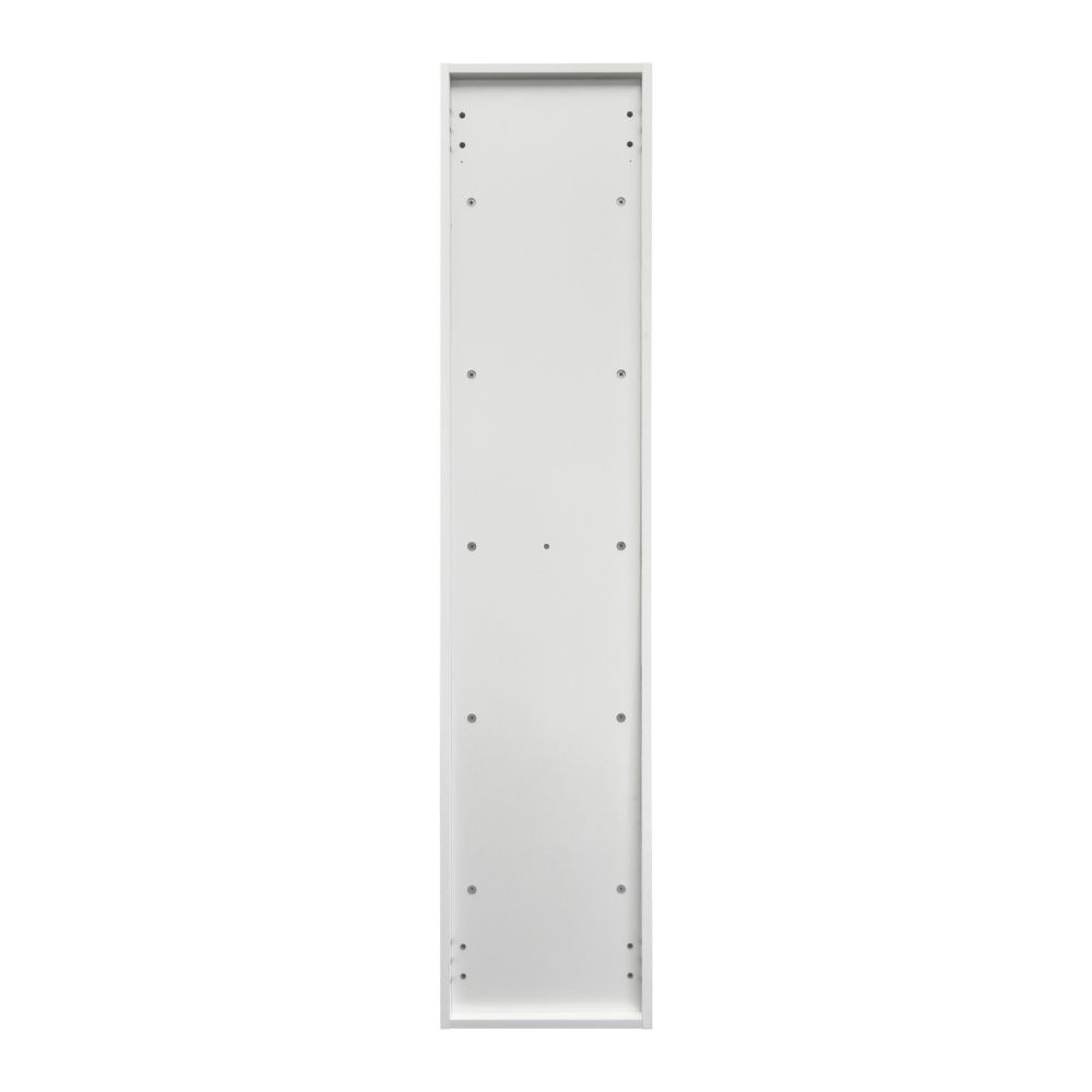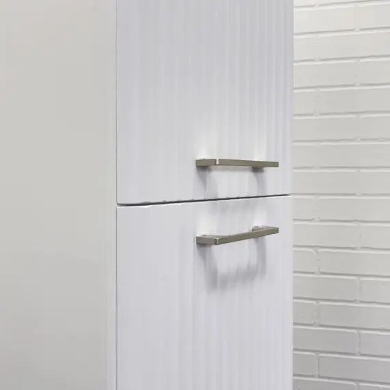 Подвесная шкаф-колонна отличное решение для хранения разных предметов необходимых в ванной комнате. За верхней дверцей и нижней створками по две полки. Петли оборудованы механизмами плавного закрывания.