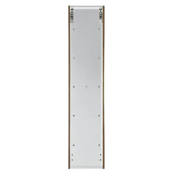 Подвесная шкаф-колонна отличное решение для хранения разных предметов необходимых в ванной комнате. За верхней дверцей и нижней створками по две полки. Петли оборудованы механизмами плавного закрывания.
