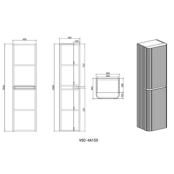 Шкаф Vincea Альто (Alto) VSC-4A150MG-R подвесной, правый, 1500*404*350, светло-серый матовый