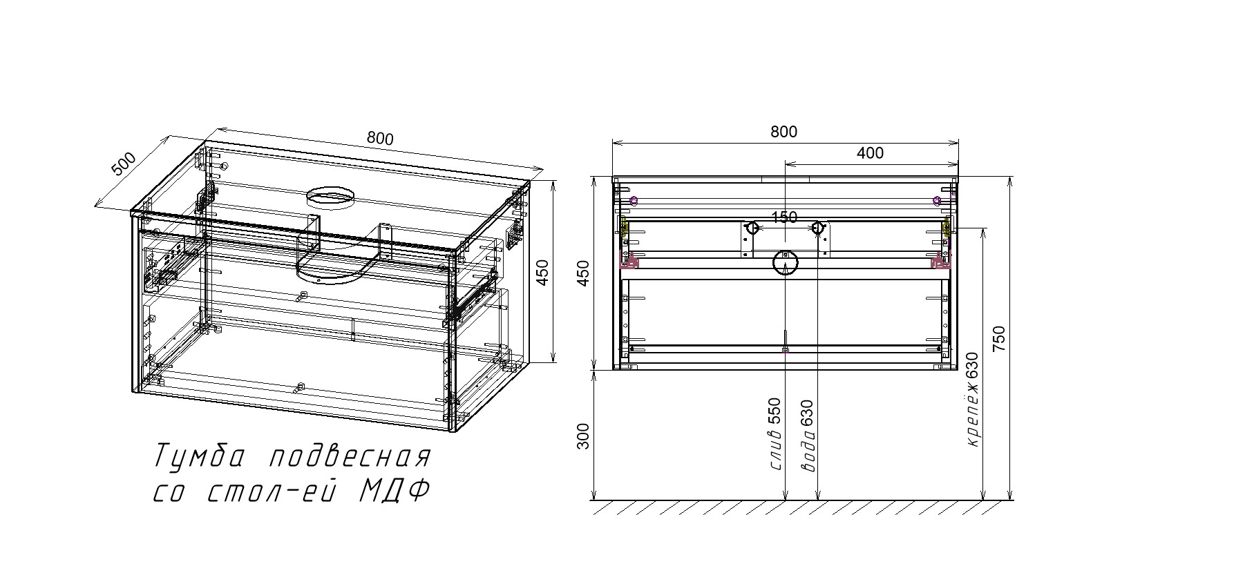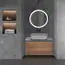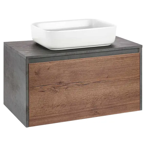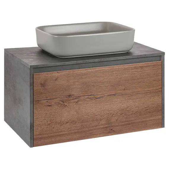 База под накладную раковину Меза (Mesa) 800 подвесная, 1 выкатной/1 скрытый ящик микролифт, Дуб табак (T.Oak) + Beton