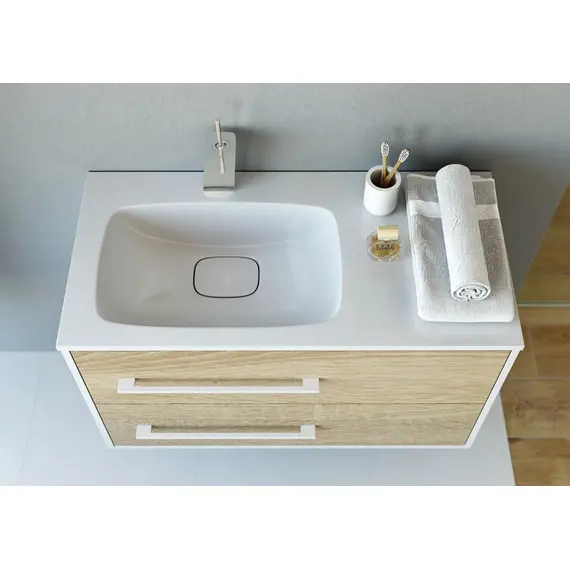 Подвесная левая тумба AQWELLA 90 см с двумя ящиками с умывальником из литьевого мрамора