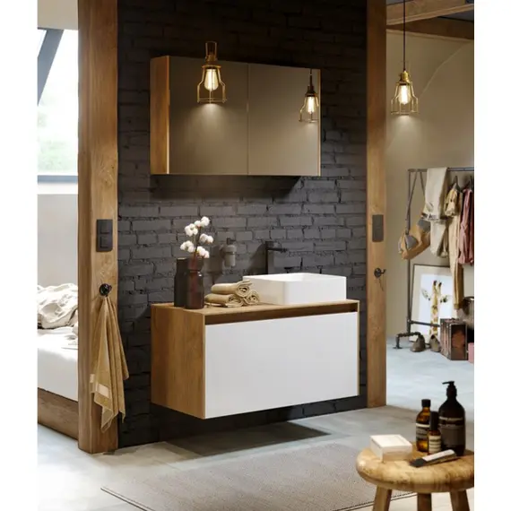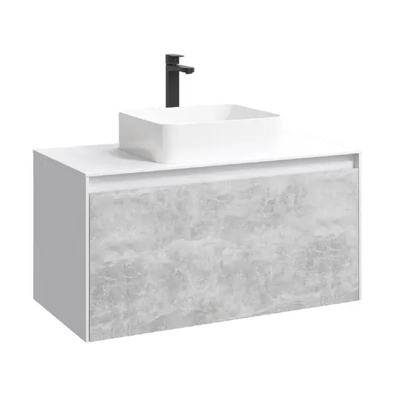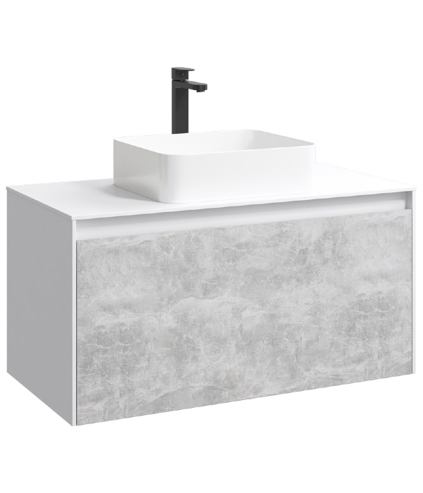 Подвесная тумба AQWELLA 100 см с двумя ящиками: основной и внутренний, скрытый за фасадом, белый/бетон