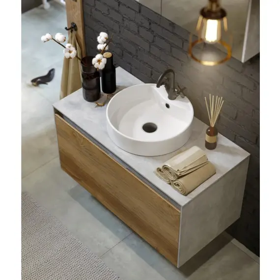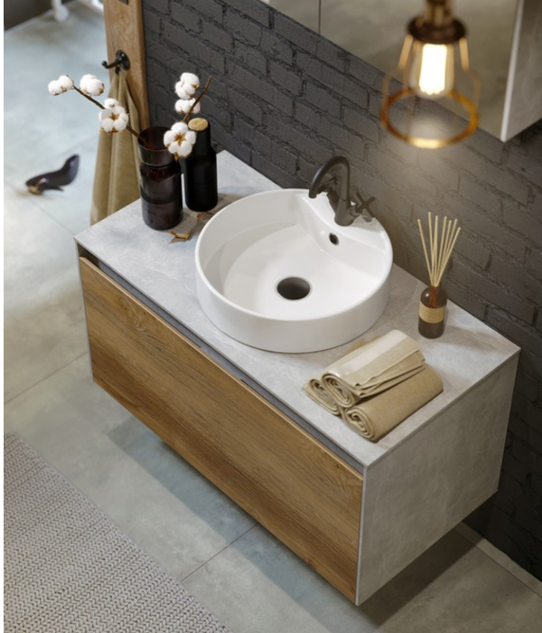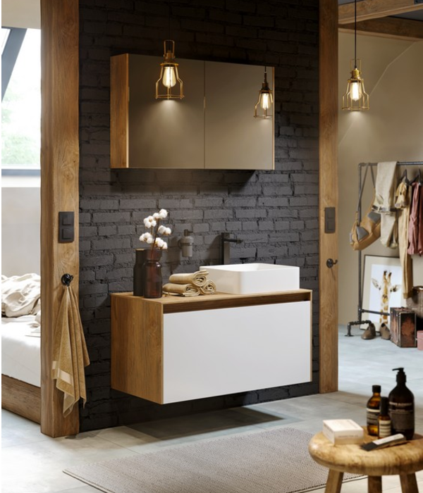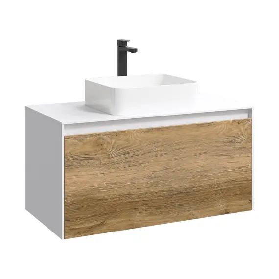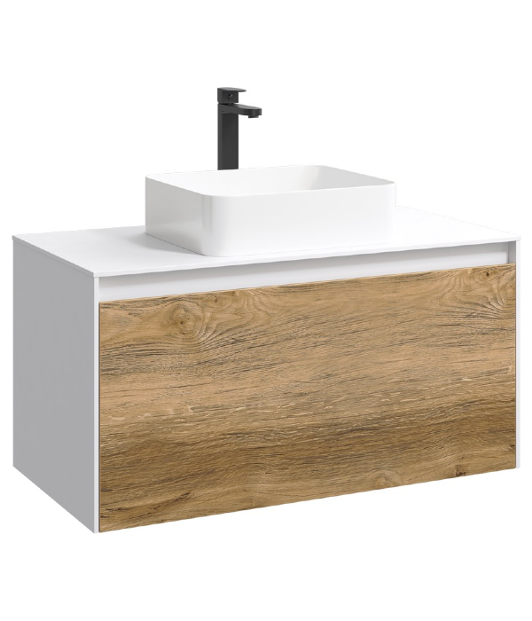 Подвесная тумба AQWELLA 100 см с двумя ящиками: основной и внутренний, скрытый за фасадом, белый/дуб балтийский