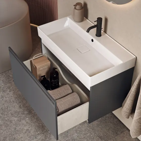Подвесная тумба AQWELLA 100 см с одним ящиком в сером цвете