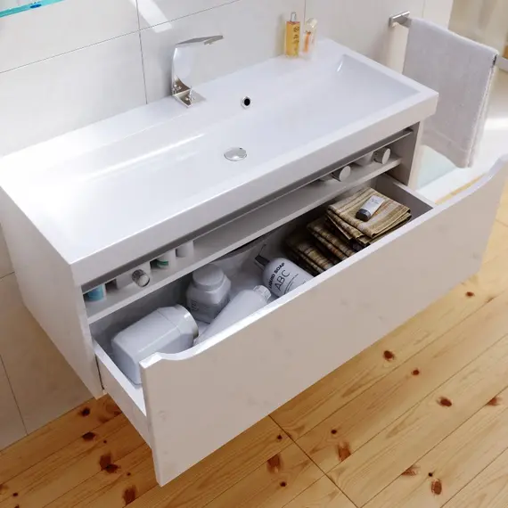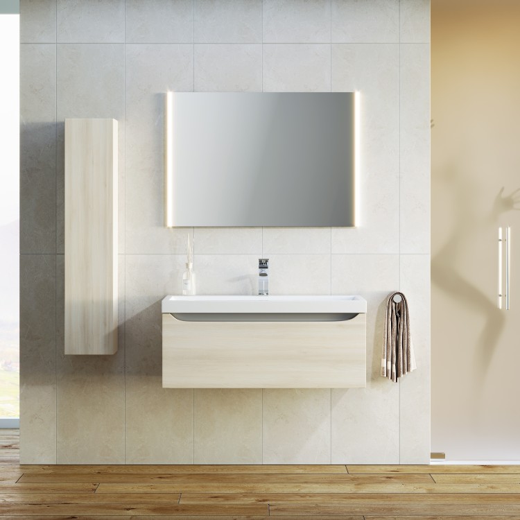 Подвесная тумба AQWELLA 100 см в цвете акация с одним выдвижным ящиком и полкой, скрытой за фасадом