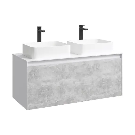 Подвесная тумба AQWELLA 120 см с двумя ящиками: основной и внутренний, скрытый за фасадом, белый/бетон