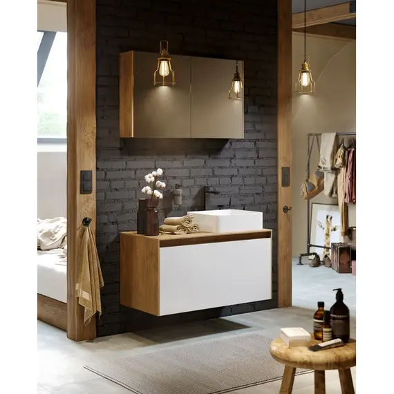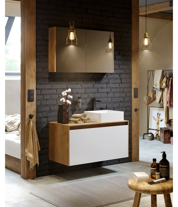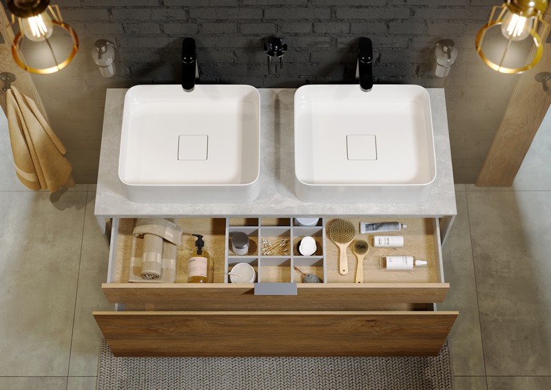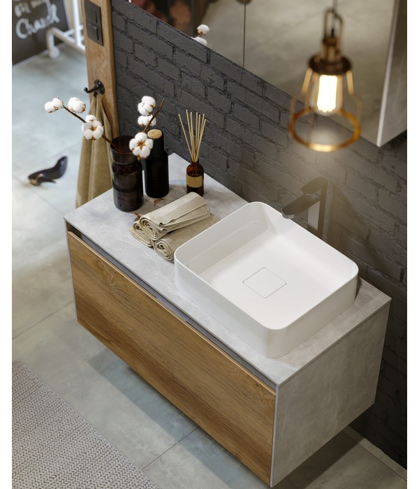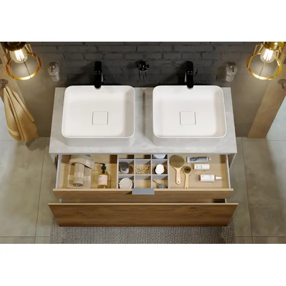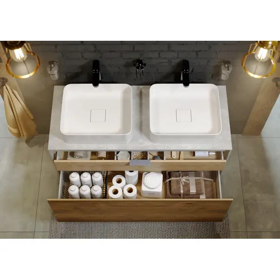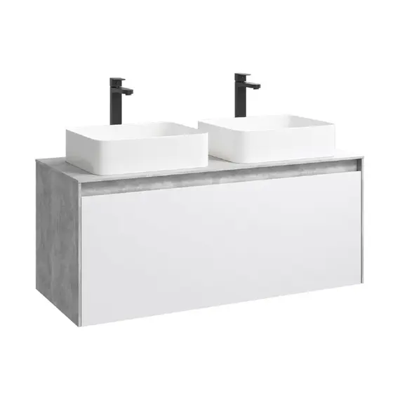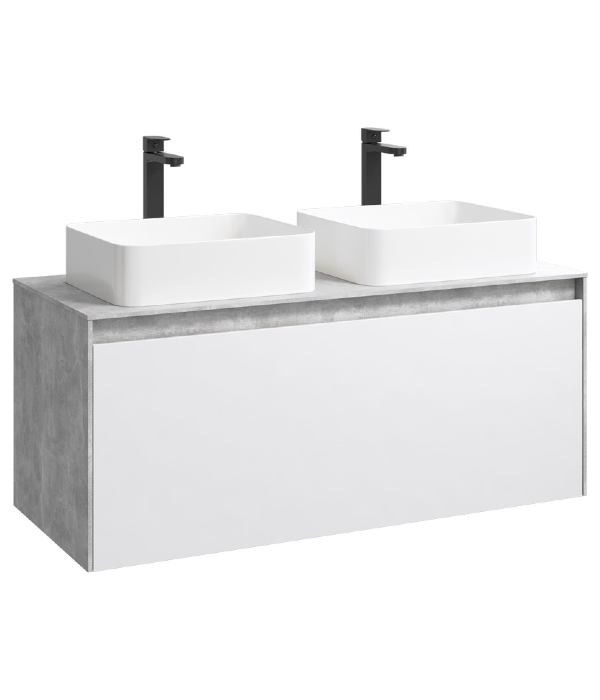 Подвесная тумба AQWELLA 120 см с двумя ящиками: основной и внутренний, скрытый за фасадом, бетон/белый