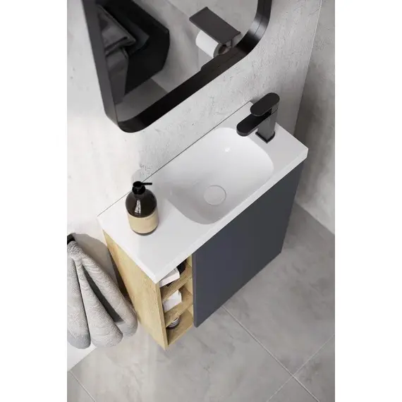 Подвесная тумба AQWELLA 60 см правая с одной дверью и открытыми полочками, корпус - дуб давос, фасад - серый матовый
