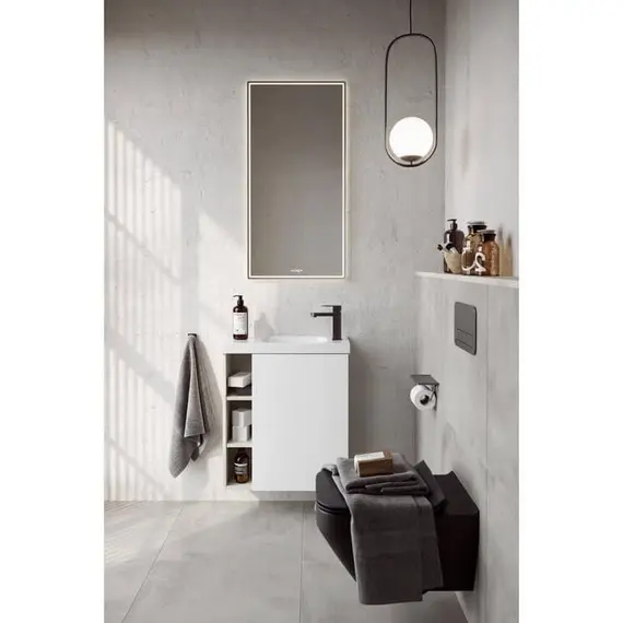 Подвесная тумба AQWELLA 60 см правая с одной дверью и открытыми полочками, корпус - светлый камень, фасад - белый матовый