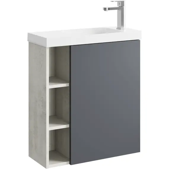Подвесная тумба AQWELLA 60 см правая с одной дверью и открытыми полочками, корпус - светлый камень, фасад - серый матовый