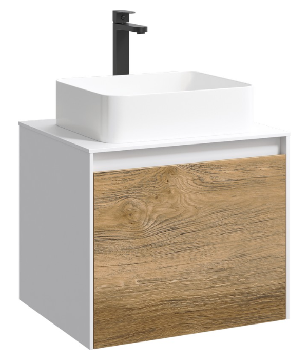 Подвесная тумба AQWELLA 60 см с двумя ящиками: основной и внутренний, скрытый за фасадом, белый/дуб балтийский