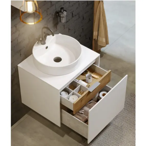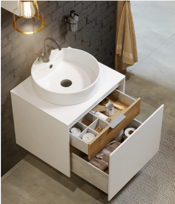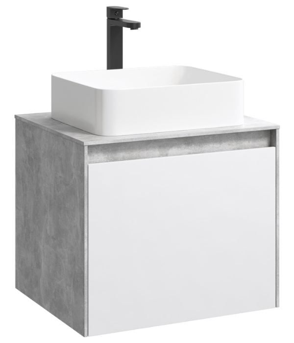 Подвесная тумба AQWELLA 60 см с двумя ящиками: основной и внутренний, скрытый за фасадом, бетон/белый