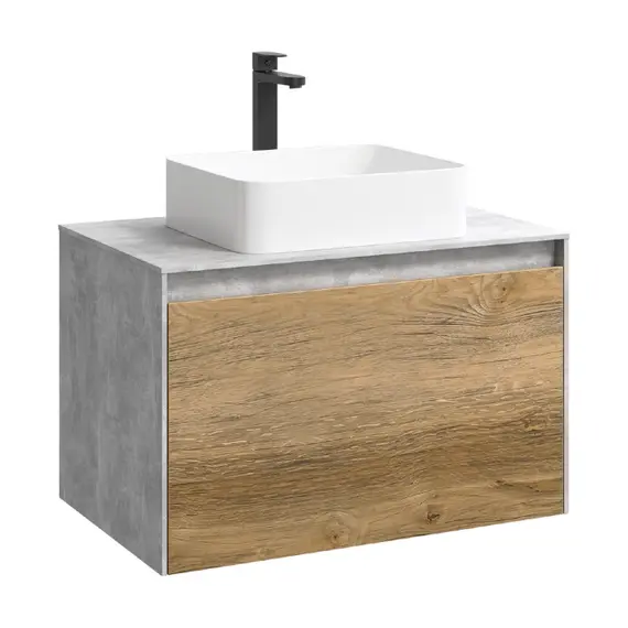 Подвесная тумба AQWELLA 80 см с двумя ящиками: основной и внутренний, скрытый за фасадом, бетон/дуб балтийский