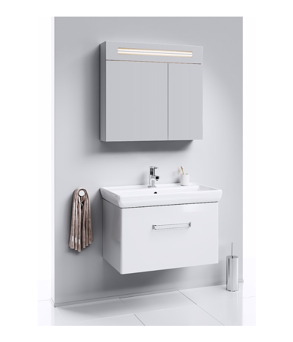 Подвесная тумба AQWELLA 80 см в белом глянцевом цвете с одним ящиком