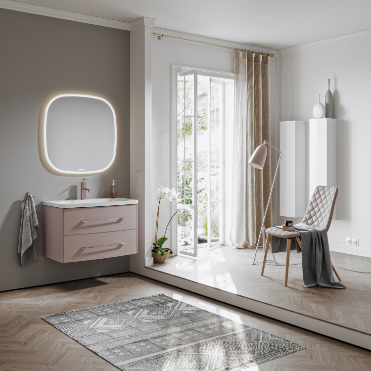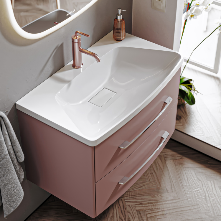 Подвесная тумба AQWELLA 80 см в цвете пепельная роза с двумя ящиками