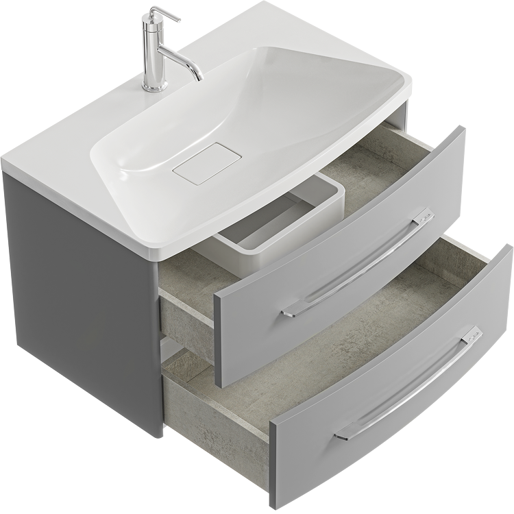 Подвесная тумба AQWELLA 80 см в цвете серый туман с двумя ящиками