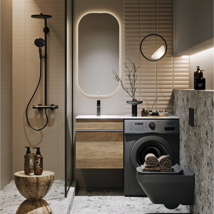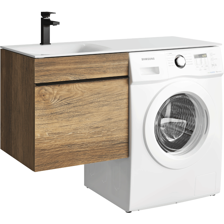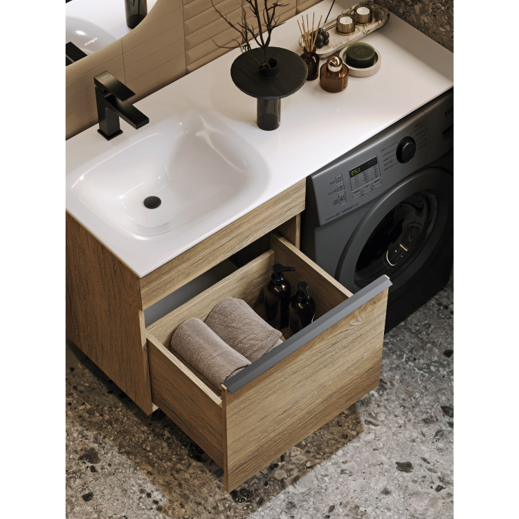 Подвесная тумба под стиральную машину с одним ящиком AQWELLA 115 см, цвет дуб балтийский