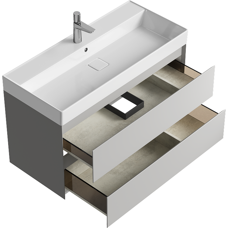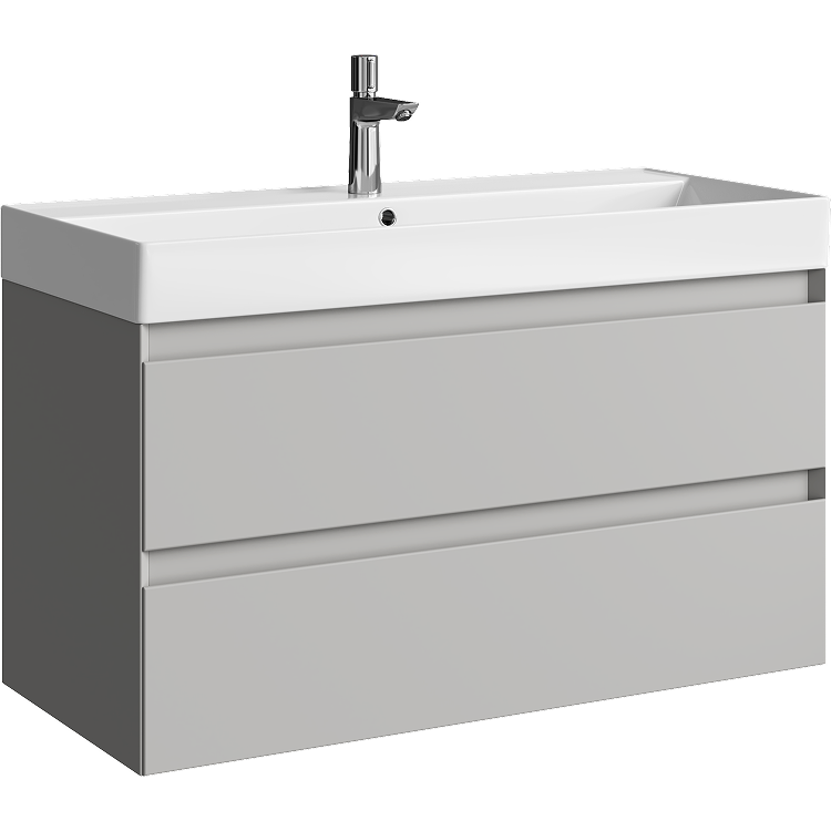 Подвесная тумба с двумя ящиками AQWELLA 100 см, цвет серый туман