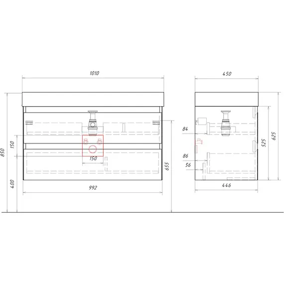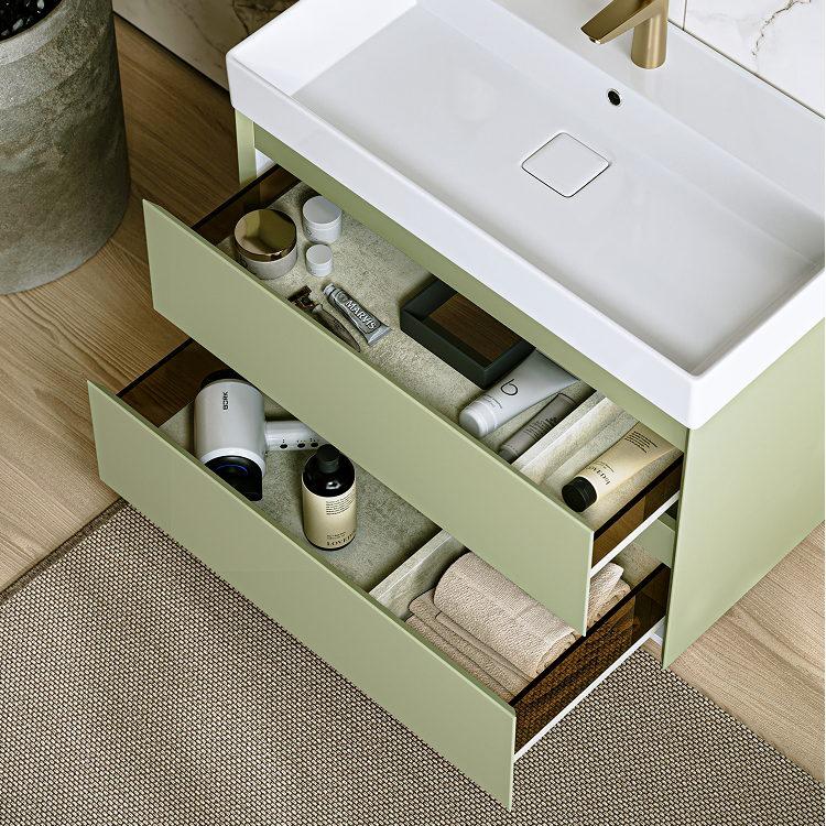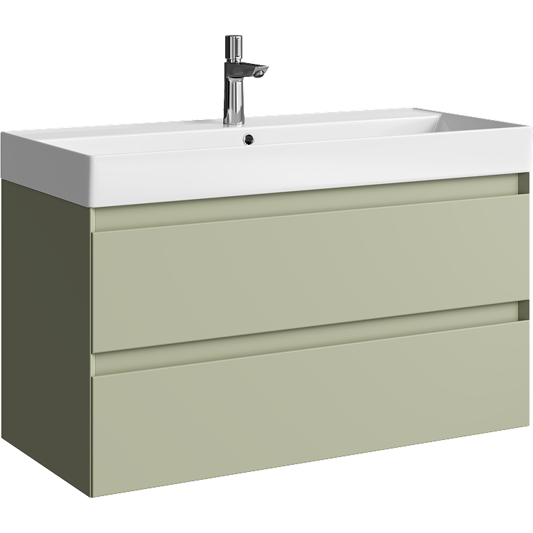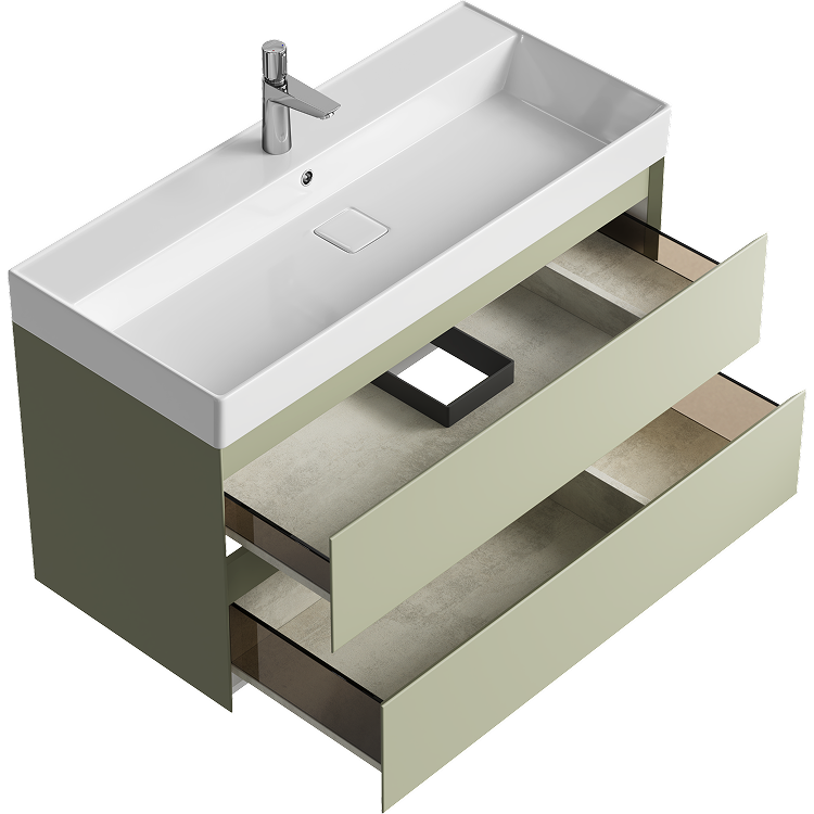 Подвесная тумба с двумя ящиками AQWELLA 100 см, цвет зеленый шалфей